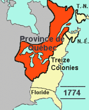 Le traité de Paris en 1763 dissout, fait disparaître ce « Canada, qui faisait partie de la Nouvelle-France ». Une colonie britannique différente est créée. Mais la résistance des colons français fait que l’Angleterre édicte l’Acte de Québec en 1774. Cet acte crée laProvince of Quebec, une colonie britannique qui est beaucoup plus vaste que l’ancien Canada. Cette province de l’empire britannique comprend le territoire du Canada d’avant 1760, mais aussi une partie des Pays d’en Haut (Grands Lacs) et les territoires entre les Appalaches et le Mississippi.La création par Londres en 1774 de cette vaste colonieQuebec choque les colonies de Nouvelle-Angleterre. L’Acte de Québec de 1774 est dénoncé par les colonies anglaises comme étant l’un des « Intolerable Acts » qui mènera à la révolution de 1776 des treize colonies qui formeront les États-Unis. Londres réagira à l’indépendance des États-Unis en formulant l’Acte Constitutionnel de 1791. Les territoires de la Province of Quebec de 1774 situés entre les Appalaches et le Mississippi ont alors été cédés aux États-Unis naissants. Ce qui reste de la Province of Quebec de 1774 a alors été séparé entre le « Bas Canada » (correspondant en partie au Québec d’aujourd’hui) et le « Haut Canada » correspondant à une partie des anciens Pays d’en Hautde la Nouvelle-France. Ce « Haut Canada » en viendra à désigner l’Ontario.